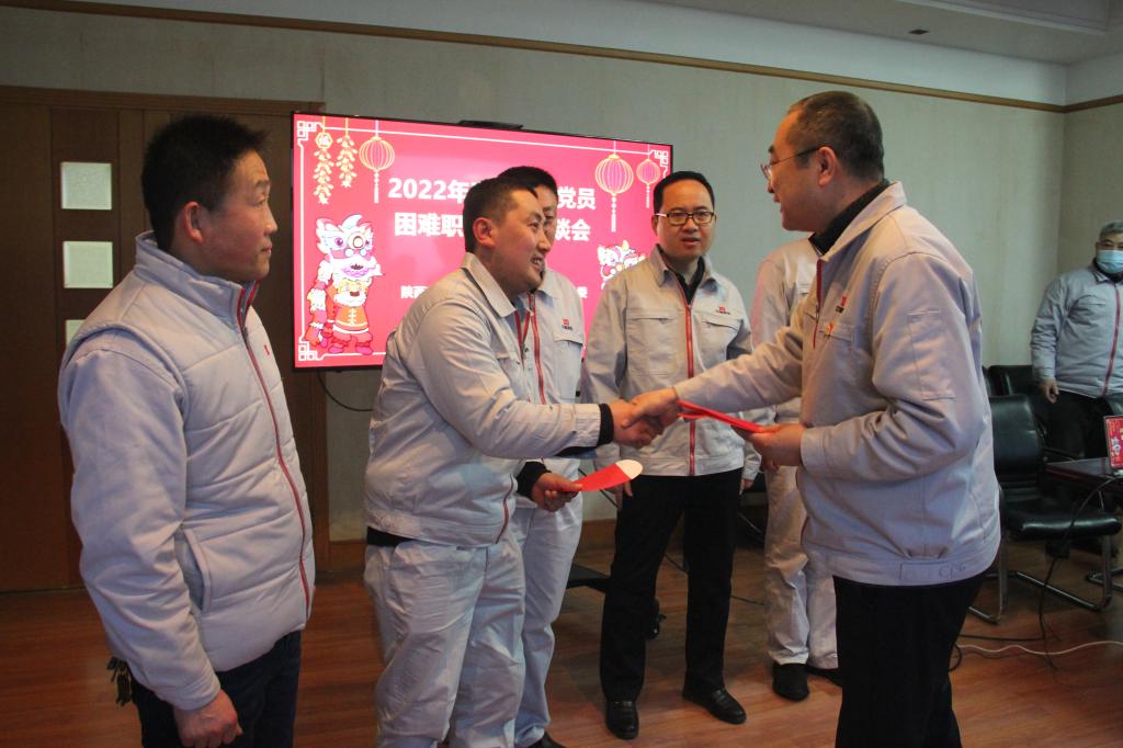 付宗喜向與會困難黨員和困難職工介紹了2021年度公司生產經營情況和取得的成績,新的一年企業面臨的挑戰,同時,企業沒有忘記任何一位生活中暫時存在困難的職工。這深深的鼓舞和激勵了與會人員,他們紛紛發言交流,表達對公司黨委的感謝之情,并愿意投身企業建設,在各自崗位上兢兢業業、努力工作,盡個人的綿薄之力為企業發展做出貢獻難。謝洪濤向與會人員一年來在不同崗位上做出的貢獻表示感謝,并將慰問金送到大家的手中,表達了公司黨委的誠摯問候和新春祝福,鼓勵他們要增強生活信心、努力干好工作;公司黨委是大家堅強的后盾,企業在穩步發展、我們的生活也會越來越好、每個人都應該自強不息、不懈奮斗,做企業高質量發展的參與者、見證者。