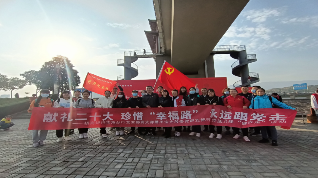 秋日暖陽,金風送爽,為慶祝黨的二十大勝利召開,豐富職工文化生活,10月22日上午,寶光股份黨群黨支部與招商銀行寶雞分行營業部黨支部攜手開展黨團共建“健步走”活動,黨群黨支部近20名黨員群眾參加了活動。