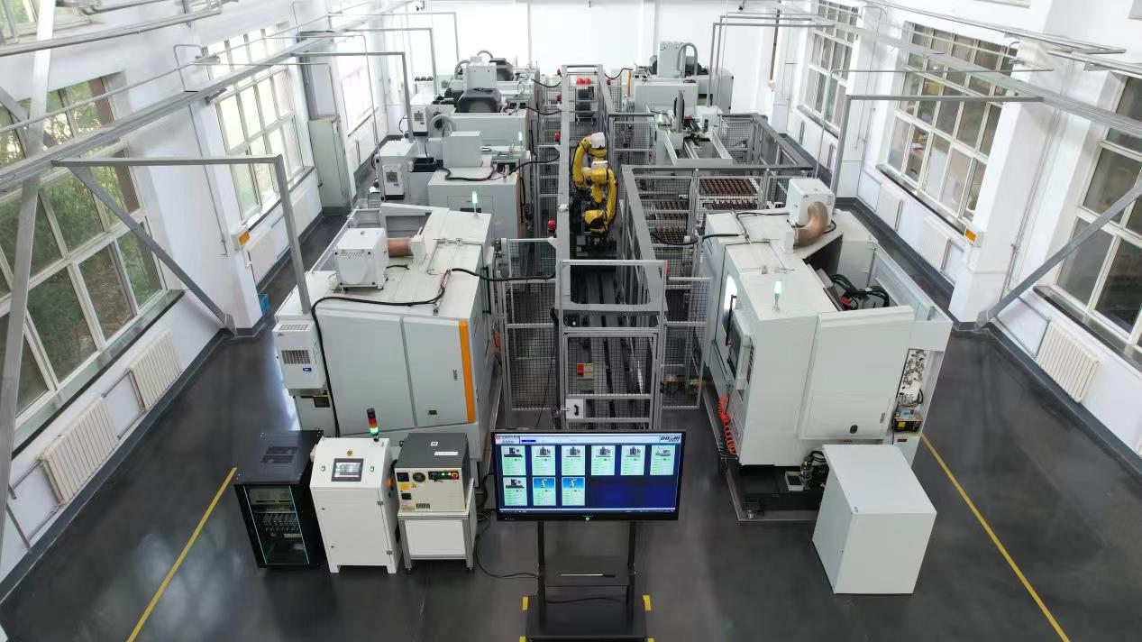 作為寶光股份智能制造年度重點項目,真空滅弧室關鍵零件智能生產線的投入使用顯著提高了公司零件生產質量、效率和智能制造水平;在降低生產成本的同時,產線充分應用5S管理和定置管理等精益工具和方法,通過對稱雙回字形布局實現了生產現場面積的最大化利用,整體呈現飽和矩形布置;7臺高檔數控設備和2臺工業機器人全部實現了在線運行監測和故障診斷;產線運用設備狀態信息實時顯示和處理等一系列先進智能制造技術,并配置有智能安全防護網及設施,有效保證人機協同作業的安全。